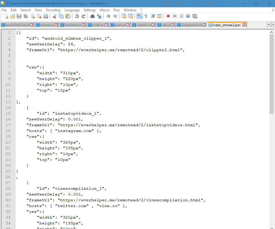 2. <OT> I've not used that one. Downloaded just now but not installed. The source code seems to suggest that it throws advertisements. The .json then loads ads into frames. Appears all of the ads come from "everhelper.me". But most ad-blockers would block it anyway.