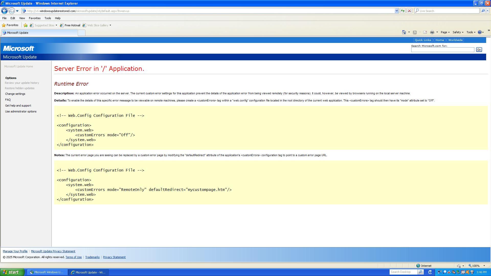 Hello I have Windows XP x64 bit edition with SP2 installed and I installed the required prerequisites for Microsoft update v6 restored but am getting this error after it says checking if your computer has the latest version of the Windows updating software for use with this website