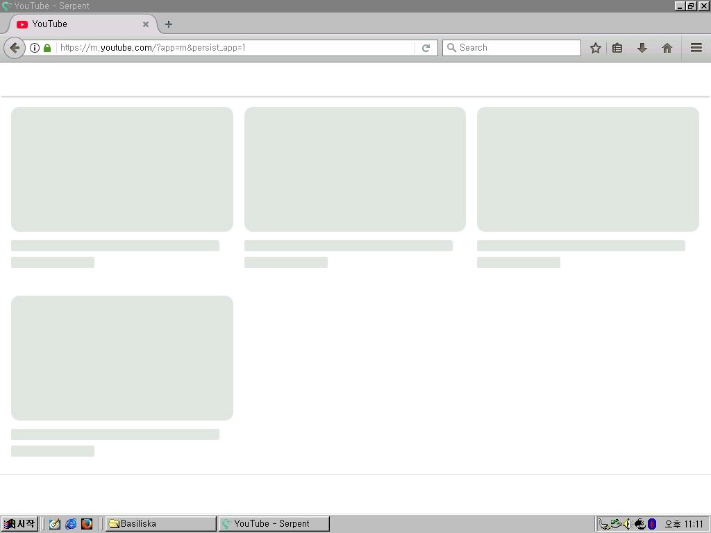 Hello everyone, I’m currently testing Serpent 52 (Roytam1’s browser). I’ve followed all the instructions discussed in this forum, and everything seems to be working well so far. However, I’ve noticed that YouTube (both the mobile and desktop versions) does not load properly — as shown in the attached screenshots. Interestingly, the YouTube mobile site loads correctly in Firefox 52 ESR, but not in Serpent 52. Could someone please test this on their end to see if the site loads as expected? I’m wondering if this issue might be related to a specific browser setting or configuration in Serpent 52. Any feedback or suggestions would be greatly appreciated. Thank you!