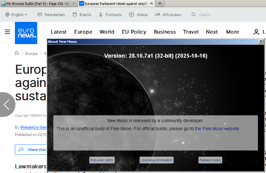 What is going on on Euronews? I get a page full of unreadable plain "binary" text in New Moon. Is the website somehow appified and not HTML based anymore? https://www.euronews.com/my-europe/2025/10/22/european-parliament-rebels-against-simplified-sustainability-requirements -