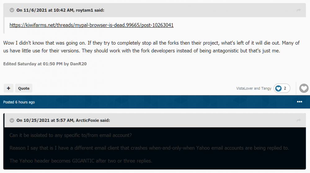 @Mathwiz : Seems this issue is unique to quotes generated by member @InterLinked ; e.g. https://msfn.org/board/topic/182647-my-browser-builds-part-3/page/62/?tab=comments#comment-1207515 Screenshot of post rendered by Serpent v52.9.0 (2021-10-08) 32-bit:1 point