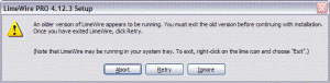 6. I used the silent switch finder from WPI and it gave me /S for limewire pro. Now when I get go to use it, I'm told there is a previous version of Limewire installed. This part of my UCD and limewire is never been installed. Please Help!!!!! See attachment for exact error message