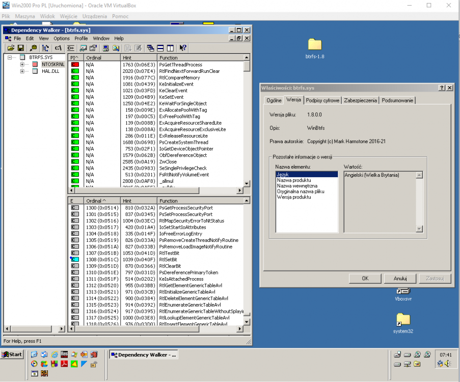 @blackwingcat BTRFS driver v1.8 https://github.com/maharmstone/btrfs/releases Please add to NTOSKRNL.EXE ->PsGetThreadProcess It ueses previously added apis: RtlGetVersion, RtlRandomEx, InterlockedPopEntrySlist, InterlockedPushEntrySlist, RtlSetBit