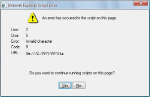I'm getting the same error (actually, a whole string of about 10 script errors) and wpi.hta freezes at the 'white' screen. This error occurs both at RunOnceEx and when launched from the desktop of English XP Pro with sp3 RC1 integrated (with ie7 and wmp11) in VPC. The same DVD runs fine when launched from the desktop of the host XP Pro sp2. Is WPIW 6.3 compatible with the latest sp3 RC1 release? Or is it a problem with IE7 being integrated (via nlite) with kb939653 & kb938127? Thanks for your help Kels