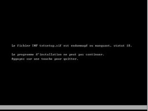 Hi all, I'm testing the multi boot solution I have followed these steps : 1) winnt32.exe /noreboot To get boot folder First boot folder "AUTO" (for unattented setup) 2) Deleted Winnt.sif & Migrate.inf & Bootsect.dat 3) Make a second exact copy boot folder (for attented setup ...) called NORM 4) Edited TxtSetup.sif (no changes because my setup file are at \i386) 5) Edited SetupLdr.bin : AUTO: Change I386 to AUTO, 4x NORM: Chane I386 to NORM, 4x 6) Edited boots sectors : AUTO.dat to point to boot folder "AUTO" NORM.dat to point to boot folder "NORM" 7) Integration of CDShell .. I have make my cdshell.ini ... Works great to boot Memtest & Dos image Boot on each windows setup but I have an error about TxtSetup.sif .. Status 18 See pict attach ... Anyone can help me ? edit: Added my folder tree ... Is it normal TxtSetup.sif is present in i386 folder too (in setup folder) ? it's unncessary no ?