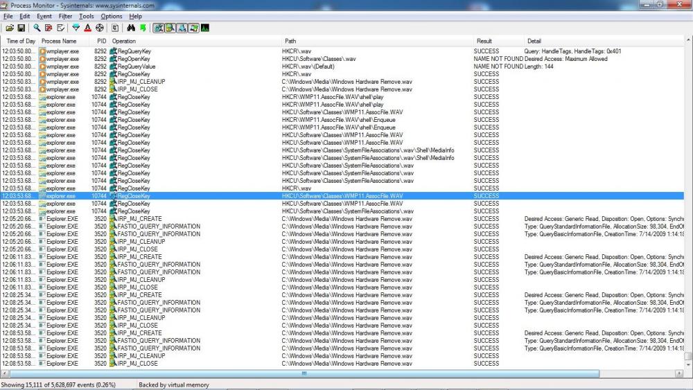 hello guys, i have a problem with my windows 7 64 bit. It is giving constant hardware removal sound in speakers and no notification. I used Process Monitor to identify the problem, but its too technical for me. I dont know what those messages mean? Please can you help me identify cause of notification sound, i am attaching screenshot of process monitor