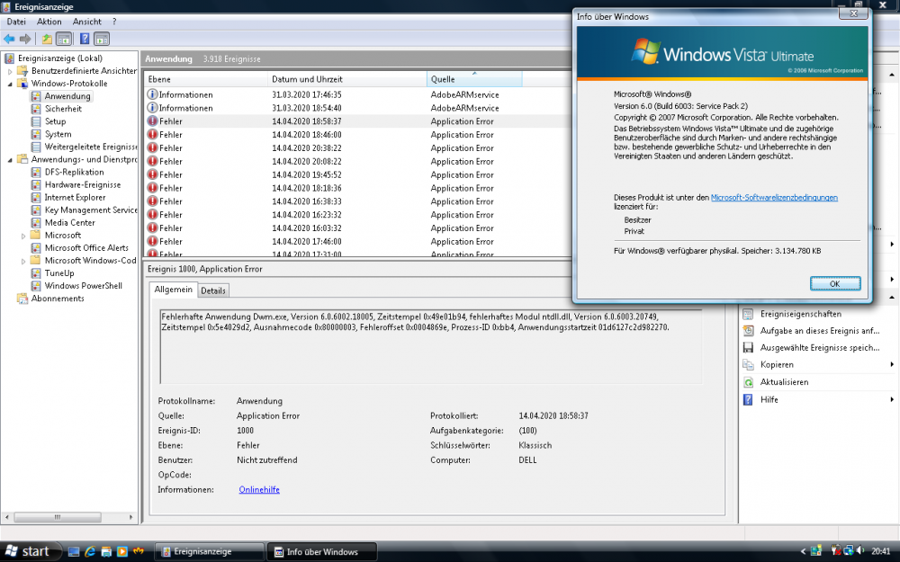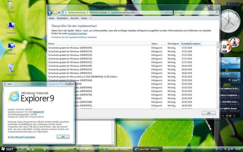 Hey guys, I followed your thread with high interest and installed the update pack from mega.nz link plus the monthly updates till 2020-03 (see down below), but I am getting a DWM crash every 20 minutes, even if its just idle-ing. Any idea? I tried several Intel GMA 965 drivers, they don't cause it. 2020-01 Servicing Stack Update für Windows Server 2008 für x86-basierte Systeme (KB4536953).msu 2020-01 Monatliches Sicherheitsqualitätsrollup für Windows Server 2008 für x86-basierte Systeme (KB4534303).msu 2020-01 Sicherheitsqualitätsupdate für Windows Server 2008 für x86-basierte Systeme (KB4534312).msu 2020-02 Cumulative Security Update for Internet Explorer 9 for Windows Server 2008 for x86-based systems (KB4537767).msu 2020-02 Servicing Stack Update für Windows Server 2008 für x86-basierte Systeme (KB4537830).msu 2020-02 Monatliches Sicherheitsqualitätsrollup für Windows Server 2008 für x86-basierte Systeme (KB4537810).msu 2020-02 Sicherheitsqualitätsupdate für Windows Server 2008 für x86-basierte Systeme (KB4537822).msu 2020-03 Kumulatives Sicherheitsupdate für Internet Explorer 9 für Windows Server 2008 für x86-basierte System (KB4540671).msu 2020-03 Servicing Stack Update für Windows Server 2008 für x86-basierte Systeme (KB4550736).msu 2020-03 Monatliches Sicherheitsqualitätsrollup für Windows Server 2008 für x86-basierte Systeme (KB4541506).msu 2020-03 Sicherheitsqualitätsupdate für Windows Server 2008 für x86-basierte Systeme (KB4541504).msu eventvwr.msc shows: Fehlerhafte Anwendung Dwm.exe, Version 6.0.6002.18005, Zeitstempel 0x49e01b94, fehlerhaftes Modul ntdll.dll, Version 6.0.6003.20749, Zeitstempel 0x5e4029d2, Ausnahmecode 0x80000003, Fehleroffset 0x0004869e, Prozess-ID 0xbb4, Anwendungsstartzeit 01d6127c2d982270. translates to: Disfunctional application Dwm.exe, Version 6.0.6002.18005, timestamp 0x49e01b94, incorrectly working module ntdll.dll, Version 6.0.6003.20749, timestamp 0x5e4029d2, exception code 0x80000003, error offset 0x0004869e, process id 0xbb4, application start timestamp 01d6127c2d982270. -