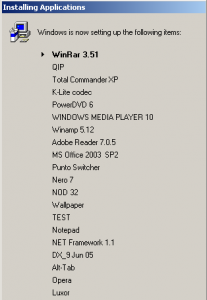 Yes, you can create a cmd file and place it into the HFSVCPACK folder. HFSLIP will parse the CMD file at T-13. You can also place REG and INF files in the same folder and HFSLIP will parse them at T-13 too. Hope this helps. Hi, it's me.... again.... I have tried the way that you tell me, but this way doesn't work. When Windows does the first logon, the window "Install Applications" doesn't show. The window that I mean is like this: Mmmmhhhh.... I think that some line code or some hotfix/application, broke my "RunOnceEx.cmd" command. Anybody have this problem too?
