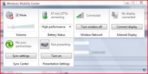 hey, has anybody noticed that Windows Mobility center, while having many great features and apps, is a little disproportionately weighted? I mean, Ill be the first to admit that his is nitpicking, but for me at least there are six separate sections (see picture) and its set up so that there are four on the top row, and two on the bottum. These sections are all of equal size, and from what ive seen they are the same on most computers, wouldnt it have made more sense for the sake of size to have it 3 and 3 rather than have a quarter of the space used in the module go to waste? Or am I missing a setting or feature to do this?