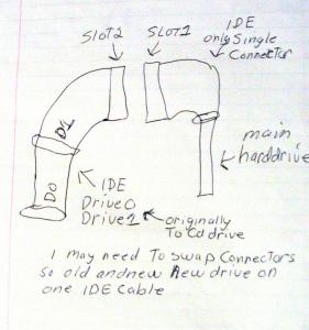 Thanks for responding. I'm just a little nervous about the whole thing so I apologize for putting too much into the post. I will be cloning from one drive to another. The old drive is an 80GB western digital and the new one to be copied to is a 160GB western digital. The file system will be NTFS but there FAT partitions also on it for probably the restore portion. The computer I'm working at to do the cloning is at friend's house and I didn't think to make any screen caps but I will the next time I go back. Paragon keeps the free space intact. ---------------------------------------------------------------------------------------------------- Here is a diagram showing the IDE configuration on my friend's board. Please excuse the primitive nature of this drawing: http://rjschat.dyndns.org:8080/paranoha/apps/diagram.jpg Also is it necessary to swap out the longer IDE cable from slot 2 to slot 1 to do the clone process? -