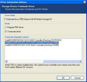 Hi, i am trying to slipstream my raid/sata drivers for Intel ICH8R, in ACHI MODE in BIOS, using nLite, this is my first try in making an unattended instalation, i have the floppy disk drive installed on my pc just because these drivers. So i found i could sliptream these drivers into windows cd, and decided to give it a try... and get rid of the floppy drive, with this asus motherboard i can make bios updates via usb thumb drive.... Well, my motherboard is a Asus P5B Deluxe AP/Wifi edition using ICH8R, i am in the Nlite stage where it can integrate my ICH8R drivers, the Bios is set to AHCI mode, for my 2 seagate Serial ATA II drives. Taken from the floppy disk, the files are: txtsetup.oem iaahci.cat iaahci.inf iastor.cat iastor.inf iastor.sys The question is, which .INF do i select? iaahci.inf or iastor.inf? or both? I am in doubt because Nlite let me choose both of them or just one, but which one should i select? If i select Multiple or single driver, it shows one of them like AHCI driver and the other like RAID driver, but i am not sure which one to choose or choose both. Thanks in advance!