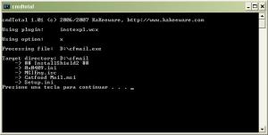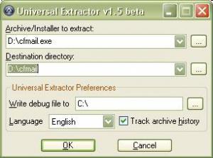 nitro: I'm using uniextract from the "SendTo" menu, I added a link to it: ("C:\Documents and Settings\User22\SendTo\Universal Extractor.lnk") I click the context menu, Send to, Universal extractor, the universal extractor dialog box appears as shown in the picture. I press OK. It gets recognized as Install shield, it offers try cache mode, I click OK, then happen the error showed before, and cfmail gets deleted from D:\ and copied to the uniextract path in D:\Programas\UniversalExtractor\cfmail.exe. Also, the directory D:\cfmail is created and not deleted. You're right again, with install explorer you get garbage in the files. With the messagebox thing, I mean making the msgbox on top of the installer, because the installer cover it, and I didn't see it until I cancel the installer (I was waiting that uniextract did something that had already done, but I didn't see). Sorry for the waste of time, I should triple check things before I post. Thanks!