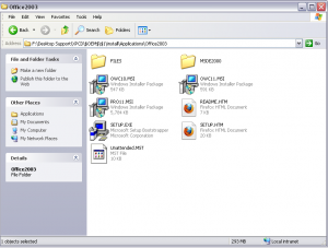 I know this is quite an old thread, but I thought why opening a new one since this is the same problem I have now. My batch file looks like that and is taken from the above mentioned website: ECHO. ECHO Installing Office 2003 Professional ECHO Please wait... start /wait "f:\Desktop Support\XPCD\$OEM$\$1\install\Applications\Office2003\setup.exe" TRANSFORMS=Unattended.MST /qb- What is wrong that it won't allow me to install Office 2003? Below is the error message. Could someone please post the correct batch file content? Thank you very much in advance for your help.