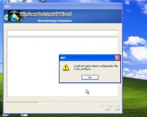 Hello all, I upgraded from wpi 6.5 to 7.01 and have encountered some issues. 1.when i begin a "vrtual pc" install the windows portion of the install is fine and then at about 25% of the wpi install. the iso disconnects itself from the virtual machine and I have to reconnect it to continue the install. 2. During install(after i reconnect the iso) a screen pops up that says"could not open reboot configuration file. c:\rb_config.js" this usually crashes wpi but sometimes it will crash but continue installing with any GUI. i do not have WPI set to restart if this is what this file is referring to. I have attached a pic so you can see for yourself. 3. Lastly I have a silent deployment file for adobe photoshop cs3 and if I test it in a regular install enviroment it works(silently) if i insert it into WPI it begins to work but only installs for about 2 or 3 minutes and then says that it was successfully installed. but it is not. THANKS in advance for any and all help/comments.