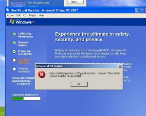 Hello all. Thanks for the patience been crazy busy at work. thanks for all the input. to answer some questions. I am using xp sp3. I do have office 2003 and components set to install seperately. I have done some testing over the weekend and have taken out the office installs and I have also taken out "Virtual PC 2007 additions. I think it is working but unsure since i have to do full installs to get the error message. also if it is needed should i post the rb_config file that is on my c: drive. it is definately placed there by wpi. but if i do a complete install with office and virtual pc additions the file is not even created(weird). Thanks for the patience and any help will be appreciated. -