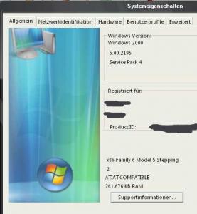 Hi Damian, yes I use Windows 2000 Professional with SP4 (as you can see in the second screenshot of my last post). And yes I choose the option to change the boot logo, but it wasn't patched. Here is a screenshot of the original german sysdm.cpl file with reshacker: As you can see there is only one language (1031) for dialog 101. In the patched file where 4 laguages. Here is the log-file: 13 Jul 2007, 10:41:14] [FileNames] Exe=Backup\sysdm.cpl SaveAs=NewFiles\sysdm.cpl Log=Logs\sysdm.cpl-multi.log [Commands] -addoverwrite "Resources\sysdm.cpl\1.bmp", BITMAP, 1, Modified: BITMAP,1,1031 -addoverwrite "Resources\sysdm.cpl\1.ico", ICONGROUP, 1, Modified: ICONGROUP,1,1031 -addoverwrite "Resources\sysdm.cpl\2.bmp", BITMAP, 2, Added: BITMAP,2,0 -addoverwrite "Resources\sysdm.cpl\2.ico", ICONGROUP, 2, Modified: ICONGROUP,2,1031 -addoverwrite "Resources\sysdm.cpl\3.bmp", BITMAP, 3, Added: BITMAP,3,0 -addoverwrite "Resources\sysdm.cpl\3.ico", ICONGROUP, 3, Modified: ICONGROUP,3,1031 -addoverwrite "Resources\sysdm.cpl\6.bmp", BITMAP, 6, Added: BITMAP,6,0 -addoverwrite "Resources\sysdm.cpl\6.ico", ICONGROUP, 6, Modified: ICONGROUP,6,1031 -addoverwrite "Resources\sysdm.cpl\7.ico", ICONGROUP, 7, Modified: ICONGROUP,7,1031 -addoverwrite "Resources\sysdm.cpl\8.ico", ICONGROUP, 8, Modified: ICONGROUP,8,1031 -addoverwrite "Resources\sysdm.cpl\9.ico", ICONGROUP, 9, Modified: ICONGROUP,9,1031 -delete DIALOG,101, Deleted: DIALOG,101,1031 -add Resources\sysdm.cpl\101-multi.res, DIALOG,101, Added: DIALOG,101,1031 Added: DIALOG,101,1033 Added: DIALOG,101,1043 Added: DIALOG,101,3082 Commands completed The patched dialog 101,1031 was a copy of the dutch dialog! Here is the code of the original german 1031 dialog: 101 DIALOGEX 32, 10, 256, 218 STYLE DS_FIXEDSYS | DS_MODALFRAME | WS_POPUP | WS_VISIBLE | WS_CAPTION CAPTION "Allgemein" LANGUAGE LANG_GERMAN, SUBLANG_GERMAN FONT 8, "MS Shell Dlg" { CONTROL "", 51, STATIC, SS_BITMAP | SS_CENTERIMAGE | WS_CHILD | WS_VISIBLE, 7, 11, 120, 98 CONTROL "System:", 10, STATIC, SS_LEFT | WS_CHILD | WS_VISIBLE | WS_GROUP, 129, 11, 40, 8 CONTROL "Microsoft Windows 2000", 11, STATIC, SS_LEFT | WS_CHILD | WS_VISIBLE | WS_GROUP, 141, 22, 100, 8 CONTROL "", 52, STATIC, SS_LEFT | WS_CHILD | WS_VISIBLE | WS_GROUP, 141, 33, 100, 8 CONTROL "", 53, STATIC, SS_LEFT | WS_CHILD | WS_VISIBLE | WS_GROUP, 141, 44, 100, 8 CONTROL "Registriert für:", 12, STATIC, SS_LEFT | WS_CHILD | WS_VISIBLE | WS_GROUP, 129, 60, 70, 8 CONTROL "", 54, EDIT, ES_LEFT | ES_AUTOHSCROLL | ES_READONLY | WS_CHILD | WS_VISIBLE, 141, 71, 100, 8 CONTROL "", 55, EDIT, ES_LEFT | ES_AUTOHSCROLL | ES_READONLY | WS_CHILD | WS_VISIBLE, 141, 82, 100, 8 CONTROL "", 56, EDIT, ES_LEFT | ES_AUTOHSCROLL | ES_READONLY | WS_CHILD | WS_VISIBLE, 141, 93, 100, 8 CONTROL "", 57, EDIT, ES_LEFT | ES_AUTOHSCROLL | ES_READONLY | WS_CHILD | WS_VISIBLE, 141, 104, 100, 8 CONTROL "Hergestellt und unterstützt von:", 58, STATIC, SS_CENTER | WS_CHILD | WS_GROUP, 7, 123, 120, 8 CONTROL "Computer:", 59, STATIC, SS_LEFT | WS_CHILD | WS_VISIBLE | WS_GROUP, 129, 115, 70, 8 CONTROL "", 60, STATIC, SS_BITMAP | SS_CENTERIMAGE | WS_CHILD | WS_VISIBLE, 7, 133, 120, 70 CONTROL "", 61, STATIC, SS_LEFT | SS_NOPREFIX | WS_CHILD | WS_VISIBLE | WS_GROUP, 141, 126, 110, 8 CONTROL "", 62, STATIC, SS_LEFT | SS_NOPREFIX | WS_CHILD | WS_VISIBLE | WS_GROUP, 141, 137, 110, 8 CONTROL "", 63, STATIC, SS_LEFT | SS_NOPREFIX | WS_CHILD | WS_VISIBLE | WS_GROUP, 141, 148, 110, 8 CONTROL "", 64, STATIC, SS_LEFT | SS_NOPREFIX | WS_CHILD | WS_VISIBLE | WS_GROUP, 141, 159, 110, 8 CONTROL "", 65, STATIC, SS_LEFT | SS_NOPREFIX | WS_CHILD | WS_VISIBLE | WS_GROUP, 141, 170, 110, 8 CONTROL "", 66, STATIC, SS_LEFT | SS_NOPREFIX | WS_CHILD | WS_VISIBLE | WS_GROUP, 141, 181, 110, 8 CONTROL "&Supportinformationen...", 67, BUTTON, BS_PUSHBUTTON | WS_CHILD | WS_DISABLED | WS_TABSTOP, 141, 195, 80, 14 } Hope this helps. hpj2