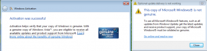 Once again, for the 2nd time, Vista deactivated itself for some undefined reason (no hardware changes). After a reboot, I got the message "Your activation period has expired" ... The online (re)activation process worked at that point! I loggued in and thought it was ok (after all, that was my 3rd activation of the same Vista install on the same laptop). Today (one week later), in order to update an old Windows 2000 machine, I needed some patches from Microsoft (Genuine check required) and realized that Vista was activated (or at least saying so) but not recognized as such on the Microsoft website. The Genuine check error message is : "Windows must be activated before validation can determine if this copy of Windows is genuine." The solution to this problem seems to be the phone activation, but since I was already forced to call MS for re-activation 2 months ago, I feel more like switching to OSX right now ... Oh, and since Vista is not seen as activated/genuine on MS website, I cannot download the previously mentioned patch that should be installed before phone re-activation (vista re-activation patch) Vista is genuine, not genuine or both : Thanks Vista