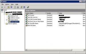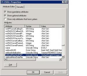 Hi, I'm new here. On Monday, our server applied Windows 2003 SP2 and upgraded RIS to WDS. We have been using RIS for the past 2 years to PXE boot some Linux thin clients. I have been manually adding computers to Active Directory [prestage], supplying a guid to recognise and setting a remote install server path pointing to the Linux boot image. [\Setup\English\Images\Thinstation\I386\templates\pxelinux.0] [see Prestage.jpg] Now when a client boots it sits trying to get an IP address and then states that PXE boot failed. After a while I realised that machine was getting an IP address [DHCP logs], it appears that it wasn't getting the boot image. I decided to set option in DHCP to download the image and this has been an effective work around to problem. Normally, when I PXE boot I get the RIS screen which allows me to logon as an Admin and then select the image I want to install. The only exception to this is if the machine has already been prestaged with a boot image [and the netbootMachineFilePath set to \Setup\English\Images\Thinstation\I386\templates\pxelinux.0] in which cases it just boots straight into Linux. [see adsiedit.jpg] It seems that WDS has brokem my ability to prestage. WDS doesn't seem to want to work in either LEGACY mode or Mixed mode. If I don't specify option 67 in DHCP no boot image is found. [see DHCP.jpg] WDS config has x86 machine pointing to a file called bootrom.pxe [Mixed mode], but this doesn't seem to exist. If I point option 67 to \\server\reminst\OSChooser\i386\startrom.com I get my windows menu but I can't bypass it without logging on as an administrator. After reading the web for 8 hours yesterday I still haven't found how to make WDS act like RIS did before the upgrade. The DHCP solution works but it means I need to make a reservation for each machine that needs a different image and I can no long RIS my machines because the moment a machine PXE boots it starts Linux. Any suggestions? [other than backout SP2!]