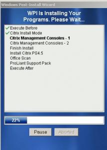 I'm using the command %reboot% to reboot my server and then to resume where it left off on reboot and logon. This works fine for the first reboot. i.e. step1 runs, reboots, logon, step2 runs, starts reboot process but also starts running step3. The reboot completes and step3 gets killed by the reboot. step3 seems to restart after this reboot (as long as it didn't finish before the reboot completed) but you end up with a messy install. I have created a simplified config to test this and it always has the issue with the second %reboot% and not the specific command. I have attached a copy of the WPI Logfile, and as you can see @ 11:07:41 it ran "shutdown -r -f -t 30" It then followed that up at 11:07:44 by running step3.cmd and trying a new shutdown.exe (which failed because it was already running a shutdown.exe from 11:07:41) I have several %reboot% required in my final script and would appreciate any pointers that can help. TIA Mark config.js pn=1; prog[pn]=['Application 1']; uid[pn]=['APPLICATION1']; dflt[pn]=['yes']; cat[pn]=['Applications']; forc[pn]=['no']; cmd1[pn]=['"E:\\Install\\tidyup\\step1.cmd"']; cmd2[pn]=['%reboot% 30']; pn++; prog[pn]=['Application 2']; uid[pn]=['APPLICATION2']; dflt[pn]=['yes']; cat[pn]=['Applications']; forc[pn]=['no']; cmd1[pn]=['"E:\\Install\\tidyup\\step2.cmd"']; cmd2[pn]=['%reboot% 30']; pn++; prog[pn]=['Application 3']; uid[pn]=['APPLICATION3']; dflt[pn]=['yes']; cat[pn]=['Applications']; forc[pn]=['no']; cmd1[pn]=['"E:\\Install\\tidyup\\step3.cmd"']; cmd2[pn]=['%reboot% 30']; pn++; Step1.cmd @echo off echo This is step 1 pause Step2.cmd @echo off echo This is step 2 pause Step3.cmd @echo off echo This is step 3 pause WPI_Log.txt