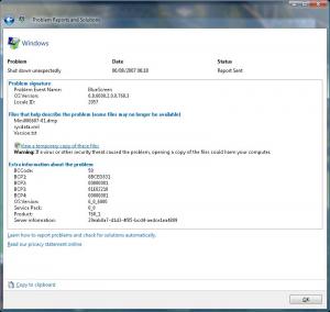 Open up the system event log, text version from that .cab file (use winrar to explode it) and do a find for memory.dmp. You have what, 8 I think, dumps in the past 7 days. That's a disaster. And they're all (or almost all) different. To me this is a hardware problem. If you'd mailed all the other minidumps I could be more sure, but that looks like a hardware issue. I saved alle the minidumps. I'll send them over. The date they happened is infront of the filename. 8 dumps, well, it's just like i told you. Starting up with a cold boot gives the problem. So that's about 8 days ago the problem started. According to the MS reply after reporting the problem it's most likely the following: - CPU - Power Supply - Memory - System board (To be sure we need more info..) ... so basically, what Bill & Co are saying is: we don't know, replace everything .... :)