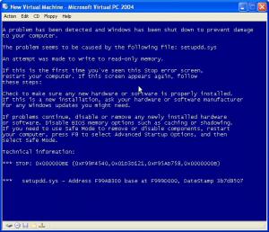 15. The DVD has run fine, I just updated the Hotfixes and now I'm getting this error. In text mode just before it shuts down. I get the error Setupdd.sys. By the way I'm running the iso on VPC. When I reboot it tells me NTLDR is missing. I thought I might of had a corrupt file I recoppied XPCD and still get this error. Any Ideas!