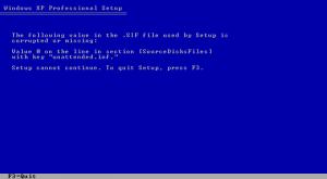I was attempting to use Gosh' method of installing packages with XP Pro SP3 using RunOnceEx guide at http://gosh.msfn.org/using_runonceex.htm. I modified the files according to the directions, but I get the following setup error. Here are the steps I followed. 1) Edited xp source file txtxsetup.sif and added the following - [HiveInfs.Fresh] AddReg = hivedef.inf,AddReg AddReg = hivesys.inf,AddReg AddReg = hivesft.inf,AddReg AddReg = hivecls.inf,AddReg AddReg = hiveusd.inf,AddReg AddReg = hivesxs.inf,AddReg AddReg = dmreg.inf,DM.AddReg AddReg = unattended.inf,newhive runonceex.inf = 1,,,,,,,20,0,0 unattended.inf = 1,,,,,,_x,,3,3 2) Edited xp source file dosnet.inf and added the following - [Files] d1,runonceex.inf d1,unattended.inf 3) Created file unattended.inf in source i386 folder and added the following - [Version] Signature=$CHICAGO$ [newhive] HKLM,"SOFTWARE\Microsoft\Windows\CurrentVersion\RunOnceEx",,0x00000012 HKLM,"SOFTWARE\Microsoft\Windows\CurrentVersion\RunOnceEx",Title,0x00000000,"Applying custom settings" HKLM,"SOFTWARE\Microsoft\Windows\CurrentVersion\RunOnceEx",Flags,0x00010001,0x00000020 HKLM,"SOFTWARE\Microsoft\Windows\CurrentVersion\RunOnceEx\Infs",,,"Applying Inf's" HKLM,"SOFTWARE\Microsoft\Windows\CurrentVersion\RunOnceEx\Infs",1,,"rundll32 setupapi,InstallHinfSection DefaultInstall XP 128 ..\Windows\Inf\runonceex.inf" 4) Created file runonceex.inf in i386 folder and added the following: [Version] Signature=$CHICAGO$ [DefaultInstall] AddReg = RunXP [XP] AddReg = RunXP [RunXP] ;http://support.microsoft.com/?kbid=232509 HKLM,"%RunOnceEx%\",Title,0,"Installing Applications and Extras" HKLM,"%RunOnceEx%\",Flags,0x00010001,20 HKLM,"%RunOnceEx%\install001",,,"7 Zip" HKLM,"%RunOnceEx%\install001",1,,"%10%\Install\Packages\7z465.exe /S" [Strings] RunOnceEx = "SOFTWARE\Microsoft\Windows\CurrentVersion\RunOnceEx" 5) Created the folder <my source drive>\$OEM$\$$\Install\Packages 6) Placed 7 Zip program in <my source drive>\$OEM$\$$\Install\Packages\7z907b.exe I have google'd the forum, but I'm at a lost. Any help would be appreciated. mhmallory