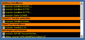 Hi All! I couldnt resist playing around a bit more with my little tool. Here's a little teaser what i have been up to: (need to do a little more testing before i can release though, but if tests run well i plan to release this weekend) What you see below is a new option that lets you select single items of one of the predefined configs and selectivly install those. The Colors can be changed in the ini just like in the original dialog, in the example the orange bars are the <item display Tags, and those with the checkbox before them are the single commands in between the item tag, where the format is : <command>: <DisplayTag> if the command supports a Display Tag and <command>: <commandparameters> if it doesnt, so it should be very easy to determin what you want to process and what not. Also by this simple parsing, all plugins should be supported, official aswell as third party ones. Hope you'll like it Greetz KMan