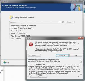 Hi, i'm trying to customize xp with nlite but in Vista x64. Nlite starts like usual, but when it scans for the winxp root files it spits out the following error (attached in the post) I'm using the latest version of nlite, and have Vista SP1 installed. Kind Regards, Jazz