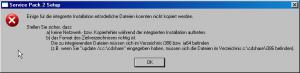 hello everyone, my name is brian and i work as a network admin for a company in germany. the area that i'm responsible for our educational department. to make a long story short, we recently updated one of our servers in the education department with an ibm x3650 xeon qc 1.86 7979-c1g. i am attempting to use n-Lite to integrate sp2 into the w2k3 server to include all of the pertinent device drivers, RAID driver etc. for this server. the OS’s dvd to be created should be Windows Server 2003 R2 Enterprise Edition. after loading the OS and selecting the different tasks to be integrated in the task section, the path of the service pack needs to be selected. it begins to decompress the data but, after the complete decompression the next window opens and begins it’s decompression and abruptly stops with the following error message! can anyone help me sort this out? i have no idea why i’m getting this error message nor can i ascertain which file is trying to be read that results with this error message. thanks i appreciate this software which btw. work really well with windows xp pro/sp2 integration. ps. the attachment is a .jpg image of the error message. and although it is in german, it is basically saying that "one of the integrated installaion files that is required could not be copied". if anyone would like to see my question in a .doc, i can be reached under the following email address; brianmparks1965@yahoo.com