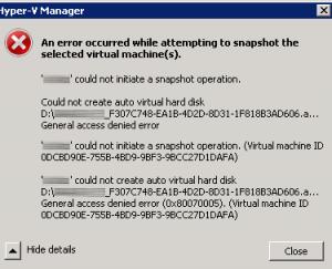 I have successfully exported a hyper-v guest to another machine. However, when I try to create a snapshot for the guest on the new host I got Generel access denied error. It works flawless for my other hyper-v guests that I also have exported from another host. Any ideas?
