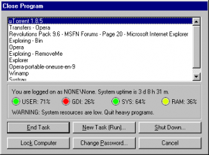 I know it's a bad excuse, but taskbar skinning was written for Me shell. 98 shell is much harder to control and requires dirty hacks. Nevertheless, it will be improved. It's no sweat, I only even mentioned it because the flickering got worse between 9.1 and 9.5. It doesn't actually bother me (yes, I'm weird; a flickering system tray doesn't bother me, yet not being able to lock my taskbar does). Queue