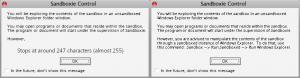 About 20 seconds after starting 0.8.5, I got this explorer exception: [ 93.645] [872, 1140] - Caught exception when named object StandardBehavior tried to process message BehaviorWndProcRet But this always happens when changing SmoothText versions without restarting. I'll shut down today and add results tomorrow. P.S. "255 characters should be more than plenty. So was 640K." ------------------------------------------------------------------- EDIT: No problems after restart. Rebuilding icon cache using TweakUI is problem-free. EDIT2: At least until my Explorer died after trying out the Entbloess for Win2000 program. I think my Windows Explorer is failing. The first instance is perfect until it crashes for some reason, then theres no end of the exceptions until a restart.