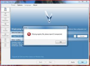 Now have new Vista SP1 slipstreamed when I use Vlite I get the following error message. Missing registry file, please report if unexpected - Mark
