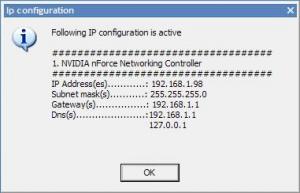 I was so tired of having to type those same ip addresses over and over again I decided to write a script that would do it for me. Installation: I created an unattended install pack so that it can easily be installed togheter with windows; just click the exe and it's installed. it's packed in the attached zip file. How it works: It's using the WMI service and is written in vbs. There is some comment in the code for those who want to know how and what it does. Basically it loops each network adapter asking you ( msgbox) if you want to set the adress to the nic. If you click yes it checks the connectivity of the nic and takes a random adress in the valid range. It then pings to see wether or not there are already systems active with that random ip; if so it restarts the procedure until the ping reports no active systems with that ip. If you click no it proceeds to the next adapter in your system. Screenshots say more then a 1000words : ----------------------------------------------------------------------------------------------------------- UPDATED(01.09.2006) -------------------------- *Updated the program with optional Gateway & DNS settings. It asks if you want to set Gateway & DNS options accordingly. IPSET_updated.7z