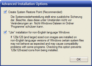 There are still some missing strings: * Advanced Installation Options * Create System Restore Point (Recommended) * "Lite" installation for non-English language Windows * If 128x 128... * Select the backup directory to recover from * Simple * Creating System Restore Point Please see screenshots below: