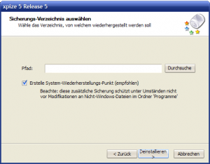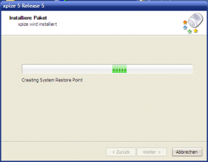 You mean, you did select the second option on xpize installer? - There where you can select the backup folder? This will uninstall xpize completely, except the mouse cursor scheme and the current 'theme' (colors and fonts, not visual styles) isn't properly reset. You have to do this by hand. - This issue will be fixed with Release 6, which should be out soon. (ps: Erasing the System Restore Point shouldn't be a big deal, since it is just an additional layer of security.) Is that, what happend to your system? Please let us know, if there are some other things, which were not reset correctly.