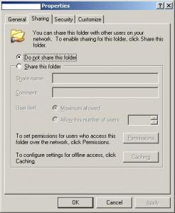 6. I guess what has me confused is why you have the property window you do, and not the one attached in the picture. I'm on XP Pro SP1 and I always remember my view being like this. Does anyone know what triggers the old traditional sharing settings?