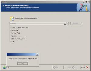 Hi John, Thanks for replying. nLite reports that the version is un-recognised. The error comes up after it finishes dumping the files from the CD to the C drive. This was the first time I was working with nLite so everything was fresh :-) I am attaching a screen shot. No last-session.ini got created. I was able to work with an XP-SP1 CD and then slipstream SP3 -- no problems there. Shafeeq