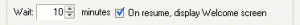So what happens right now when you resume, instead of the welcome screen? Is your machine a member of a network domain? Hit Windows-R and enter control userpasswords2 in the box and hit enter. Is the box checked requiring a username and password? Post a screenshot of HKEY_LOCAL_MACHINE\Software\Microsoft\Windows NT\Current Version\WinLogon I also found this webpage with google, but have never used the utility or know the author. Use at your own risk.