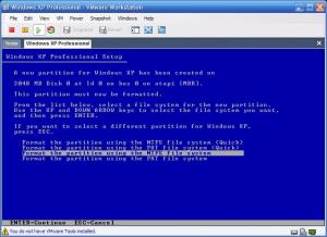 hi, i want to know if there's a winnt.sif entry that skips the dialogue attached. i want to choose on what partition it installs, but not what type of format i want to use (default should be ntfs - quick) any help?