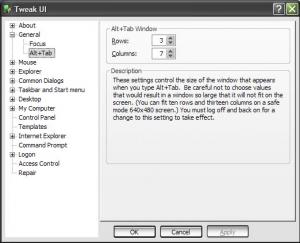 15. Under the "General" setting under "ALT+TAB". Not sure if you have to have the "ALTTAB" tweak or not for this to show up, but it's in the latest version that you can dl from M$. *edit* See pic below: version #2.10.0.0 *edit2* that's the default setting in TweakUI, I never change it.