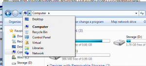 19. 1. no file size summary in the "details pane." Only shows how many items. Now I have to select all files and choose properties and then i can see what size they use. - I'd have to agree. It doesn't show the file size total of all files like it used to in XP. It's annoying. 2. can't "breadcrumb" up to the desktop - Sure you can, see picture below. You can even add desktop to you favorites as I have done. 6. long filenames are truncated and hidden. - sometimes it's better to truncate. 9. The new super bar requires two clicks and identification of a thumbnail. I find this much slower then the classic with an icon and name. - just change the taskbar setting to "never combine". you'll go back to the classic way of displaying tasks in taskbar. 10. Sort by tabs like size and name should be present in all view modes. Yes, sometimes I wish it wouldn't assume I need a "rating" column just because I have one picture of music file in the folder. This is one annoying feature. I don't care for rating in any of my folders. But anyway. you just have to work with it. No OS is perfect.