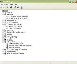 Copy file ahcix86.sys to system32\drivers. Import this reg settings REGEDIT4 [HKEY_LOCAL_MACHINE\SYSTEM\CurrentControlSet\Control\CriticalDeviceDatabase\pci#ven_1002&cc_0106] "Service"="ahcix86" "ClassGUID"="{4D36E97B-E325-11CE-BFC1-08002BE10318}" [HKEY_LOCAL_MACHINE\SYSTEM\CurrentControlSet\Services\ahcix86] "Type"=dword:00000001 "Start"=dword:00000000 "ErrorControl"=dword:00000001 "Tag"=dword:00000021 "ImagePath"="system32\\drivers\\ahcix86.sys" "Group"="SCSI Miniport" [HKEY_LOCAL_MACHINE\SYSTEM\CurrentControlSet\Services\ahcix86\Parameters\PnpInterface] "5"=dword:00000001Goto BIOS, set AHCI. Reboot. I am not sure about that, because the actual ATI AHCI/RAID drivers (download link) are dated 05/22/2009. So after I installed the drivers from Fernando 1's post according the guide of cdob, only exchanging x86 with x64, I managed to make my Win XP x64 boot with AHCI mode enabled in bios on my M3A H/HDMI mobo (BIOS version 1702) but the result was not what was expected. After the successful first boot it found new hardware and i pointed the driver folder for the AHCI driver and everything was installed correct after one more restart all was working normally, but i could not determine wether the hot swaping function is active nor NCQ or something went wrong. When i opened the device manager i found this: I managed to find info about Intell chipset systems and how windows recognizes drives there HERE but nothing like that appeared in my case. Also Everest and HD Tune could not read the hard drive smart info or thermal sensors. So what went wrong and how should i fix it?