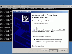 im trying to make a semi-unattended xp installation (sp2 splitstreamed). everything goes perfectly fine, until this. it happens right before the user is prompted for a login name and the internet setup wizard w/ that animated ? in the blue circle (right after that Please Wait screen after the resolution fix). i discovered that msobshel.htm is the file that displays that. for some reason, its asking me to open, save, or cancle the file. i got a screen shot here incase it helps Pressing open would give me "This file does not have a program associated with it for performing this action. Create an association in the Folder Options control panel." Clicking OK would halt my installation trying to save it and open it does the same. actually, doing anything wont help, the prompt is a signal for death so, anyone know how to get around this? maby something i messed up on in winnt.sif file?