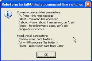 Hello all, I contacted Roboform support yesterday to see if this feature had been implemented yet and to my suprise, it had! So of course I wrote an autoit script to suit my needs. It has an AdLib func because I found in some cases, especially if a browser is open or an explorer window, it prompts for reboot or to proceed with the install. I also have it taking the Roboform taskbar icon out of startup. You may or may not want this, so you can erase it if you like (the two reg entries). This is probably my most used application. Attached is a screenshot of the silent install options. Alternatively, you can view them yourself by running "Airoboform.exe /?" AdlibEnable("popup") ProcessClose("firefox.exe") ProcessClose("iexplore.exe") runwait("AiRoboForm.exe /silent /close") Processwait("robotaskbaricon.exe", 10) ProcessClose("robotaskbaricon.exe") RegWrite("HKEY_CURRENT_USER\Software\Siber Systems\RoboForm", "ShowTaskbarIconOnWidowsStartup", "REG_DWORD", "0") ;stops roboform from starting with windows RegDelete("HKEY_CURRENT_USER\Software\Microsoft\Windows\CurrentVersion\Run", "RoboForm");stops roboform from starting with windows Exit func popup() If WinExists("RoboForm Installer", "") Then ControlClick("RoboForm Installer", "", "Button1") EndIf If WinExists("RoboForm Setup", "") Then ControlClick("RoboForm Setup", "", "Button2") EndIf EndFunc