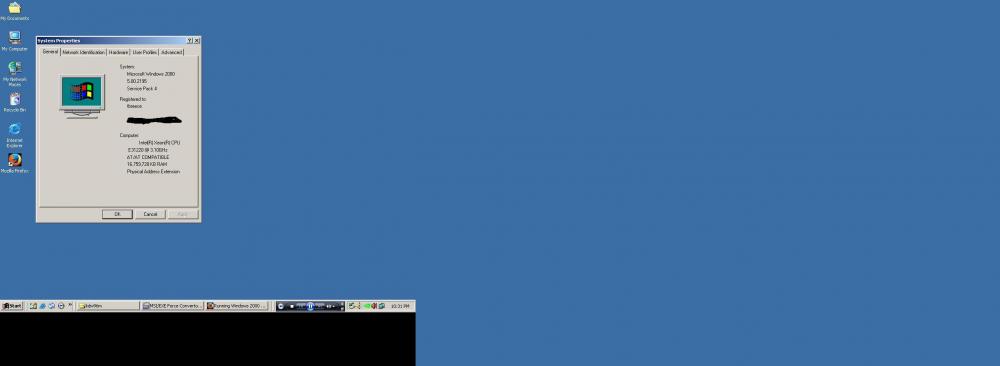 I'll have to research into that. But I ended up having to reinstall because "something" corrupted my last Win2000 install so badly that I couldn't even get the recovery console to find it. So I dunno what happened. But I decided to not install the X-Fi card drivers this time and just go ahead and install the Realtek drivers. This is what I ended up with. I left the whole thing in because I do have my dual monitors working and I'm also playing audio right now via WMP11. It IS working. I am going to look for Server sound card software. I never thought about Server/Consumer grade versions of Windows and support for >4GBs. That's some great thinking! Now some more interesting follies. I stayed away from some of the later versions of Extended Core because videoprt.sys was flawed and would not allow for dual monitors to work, this was especially true in version 16a. For fun, I downloaded version 16d, which Blackwingcat only released in Japanese for some reason, and opened it up to poke in the files. I took notice that videoprt.sys was slightly newer in this release and language neutral. So I replaced the file included in 16a with the one in 16d and reinstalled the 16a package. Low and behold, dual monitors work. It was that single flawed file that actually was updated but not for an English release that prevents dual monitors from working. Then again, how many others but me here use dual monitors on Windows 2000? -