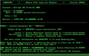 This indeed causes trouble Normally my folder is called "WINXP" and everything goes perfect. Now I renamed the folder to "WINXP install dir" and I had an error that I never had before (see screenshot) bottom line: don't use spaces in your foldername EDIT @Ghostrider: Thanks to the spaces I now also have a leftover file: presetup.cmd