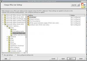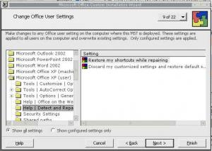 i'm trying to find the section where to remove it, while creating the .mst file... but my "change office user settings" is very weird. it's suppose to be 2003, but it while using the orktools, during the creation of the .mst file, it shows up as outlook 2002, powerpoint 2002, microsoft office xp (user).... so on. but it actually shows up as 2003 after install! check out the pix to see what i mean.. --------------------------- update: sorry, was using orktools for xp. -