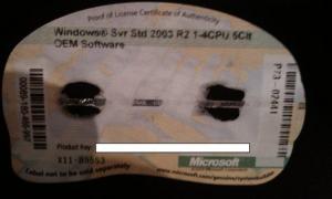 OK, so I have a legit license for Windows Server Standard 2003 R2 and I have tried numerous ISO's but I cannot get the product key I have to work with any of them. I even went to Rectron, who recently fixed the server, and they were kind enough to burn me an OEM disc. Still no luck. Apparently it is the DSP version but when I did a google search for the serial # on the license I saw something about it being R2a, which I didn't know existed. Its really quite confusing with all the different versions out there and I cannot for the life of me find a disc that works. Anyone have any experience with this and can point me in the right direction? See license sticker below for product info. Desperately need to get this thing reloaded. Thanks.