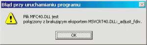 5. Msvcrt40.dll file version 5.1.2600.5512 does not work properly! You can not run MSInfo32.exe because the file MFC40.DLL (4.1.6151) is linked to missing export of MSVCRT40.DLL: _adjust_fdiv Msvcrt40.dll file version 4.22.0000 (from Windows ME) works with the Mfc40.dll (4.1.6151) correctly and Msinfo32.exe opens.